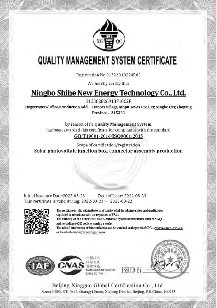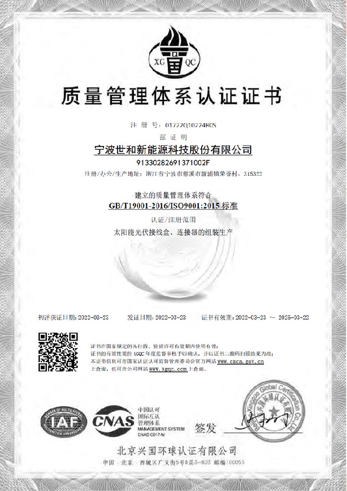 質(zhì)量管理體系認證證書